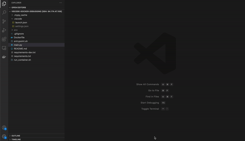 I was surprised when I first tried this that when you set breakpoints via the VSCode UI on the local version of a Python script, that will correspond to the copied scripts that run inside your Docker container! Pure wizardry from VSCode.